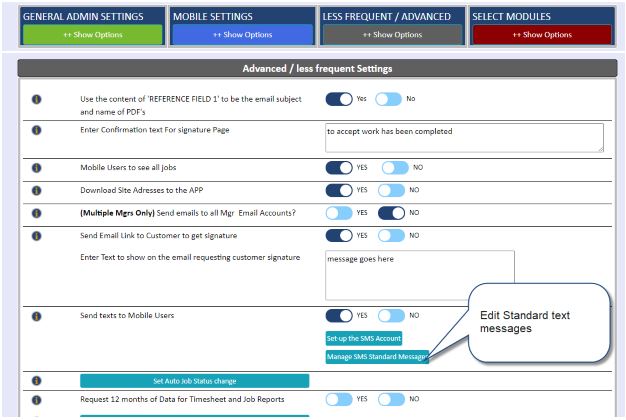 SMS texting can be sent from the mobile job sheet by the mobile user or you can send a SMS text from the management web Portal.